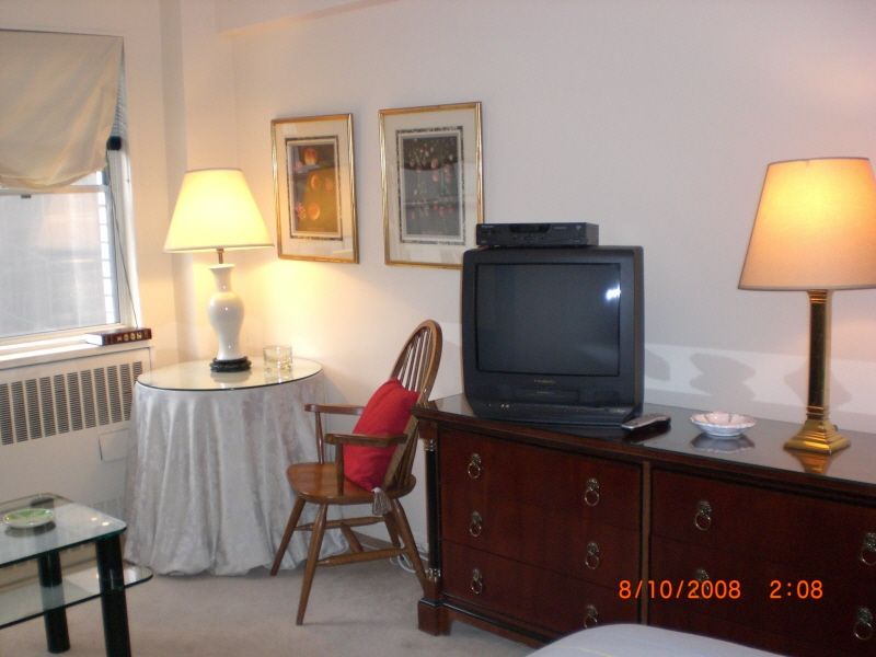 Fully furnished with queen size bed, cable tv, big closet, chest of drawers and sitting area. Aero bed available for one extra person or child.
