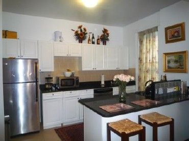 It has two large full baths, 4-5 bedrooms with lots of light, large living room with a 32 inch high definition LCD television with cable service and a large separate formal dining room. Both the living room and the dining room have almost floor to ceiling windows so the light floods in!