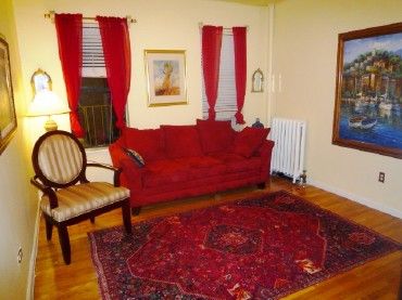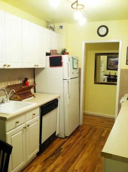 The apartment is lovely and has high ceilings and wood floors. It has a full kitchen with full sized refrigerator and oven, large screen (37") High-Definition LCD Television.
